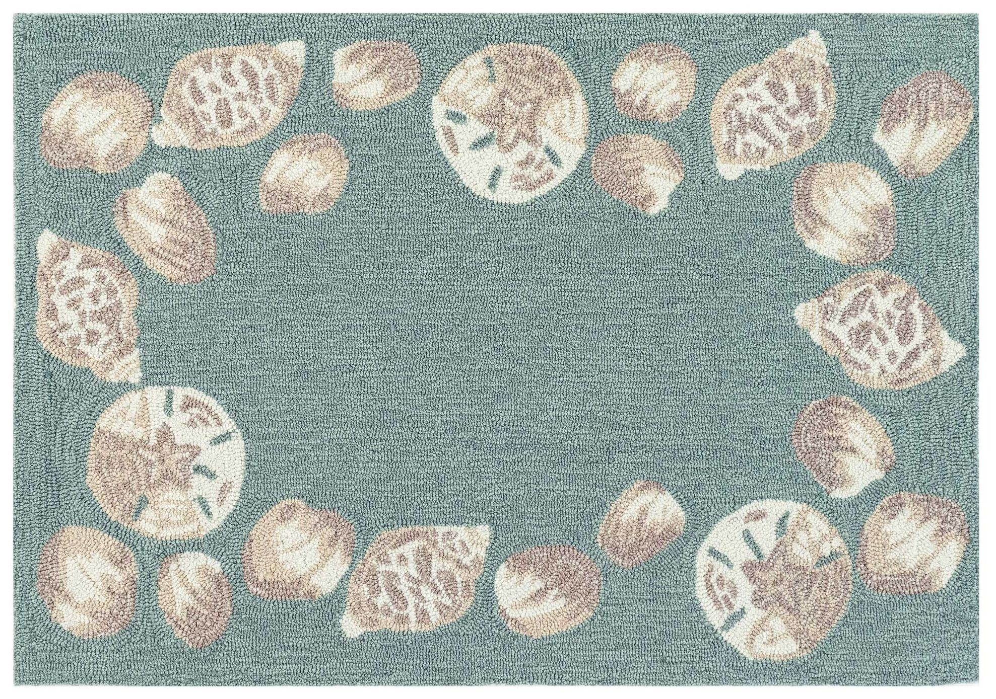Capri Seashell Border 172304 2'x3' Aqua Outdoor Area Rug