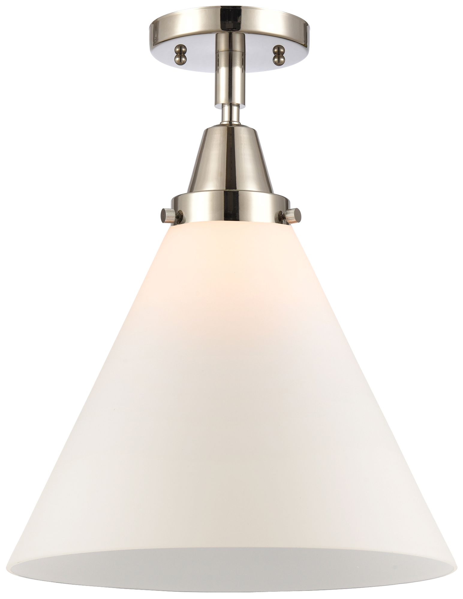 Caden Cone 12" Flush Mount - Polished Nickel - Matte White Shade