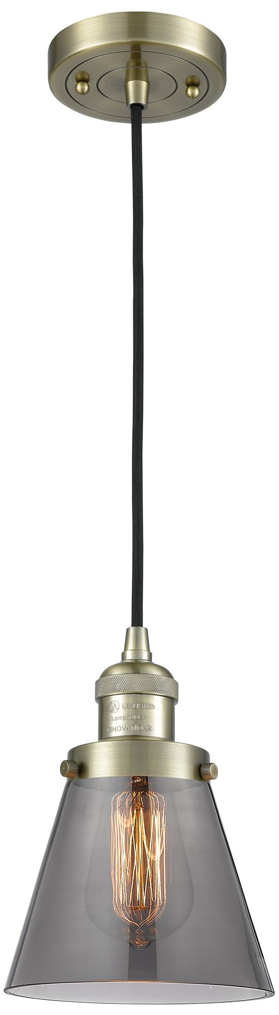 Franklin Restoration Cone 6" Brass Corded Mini Pendant w/ Smoke Shade