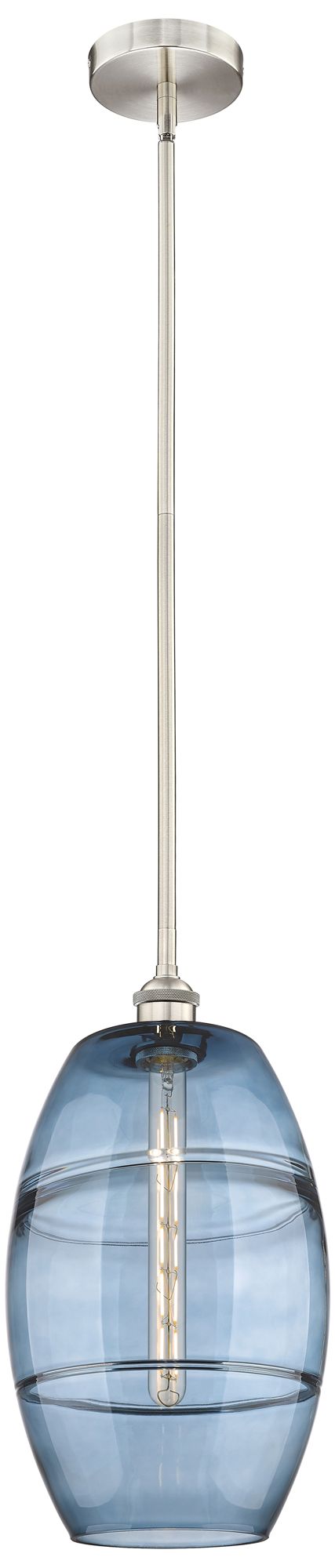 Edison Vaz 10"W Satin Nickel Stemmed Mini Pendant w/ Princess Blue Sha