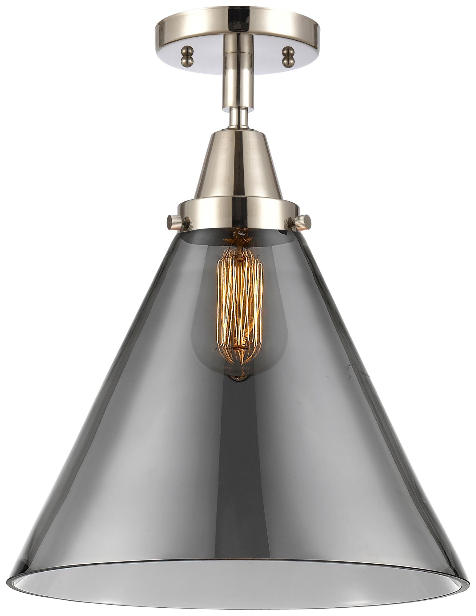 Caden Cone 12" Flush Mount - Polished Nickel - Plated Smoke Shade