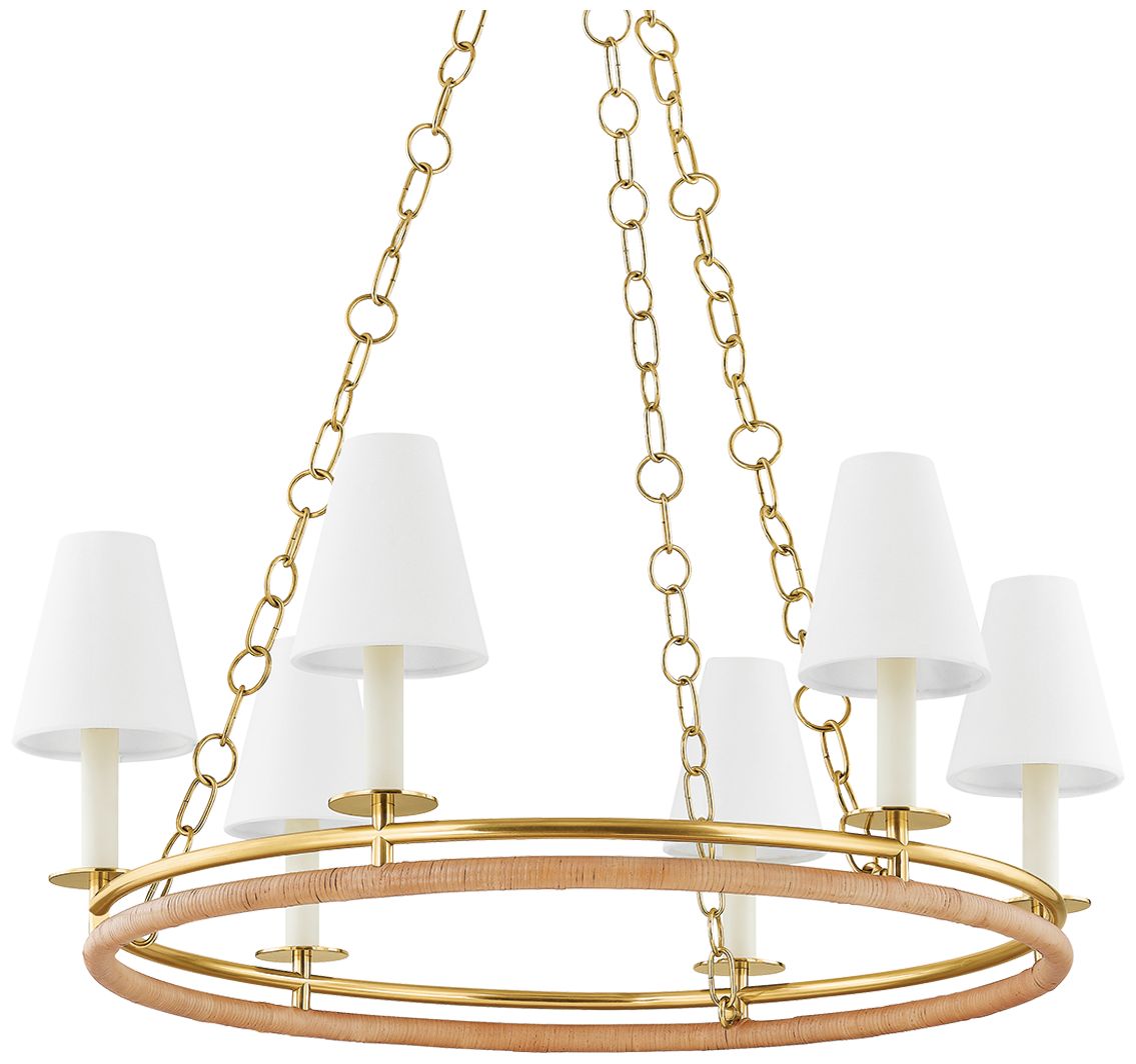 Hudson Valley Swanton 31" 6 Lt. Aged Brass Chandelier
