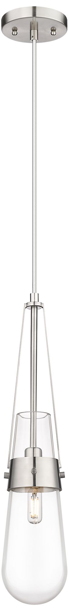 Milan 4.38" Wide Cord Hung Satin Nickel Pendant With Clear Shade
