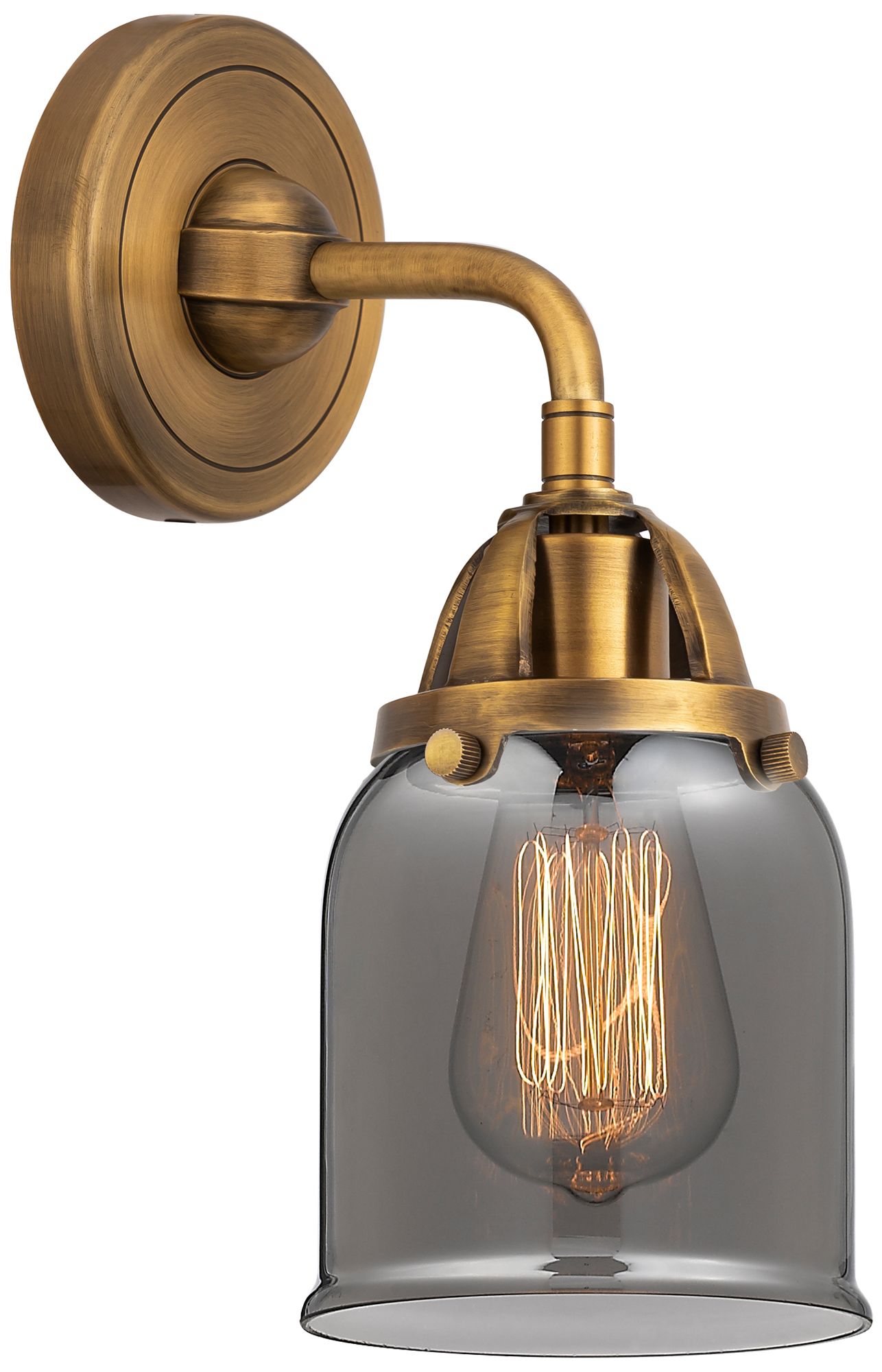 Nouveau 2 Bell 5" Incandescent Sconce - Brass Finish - Plated Smoke Sh
