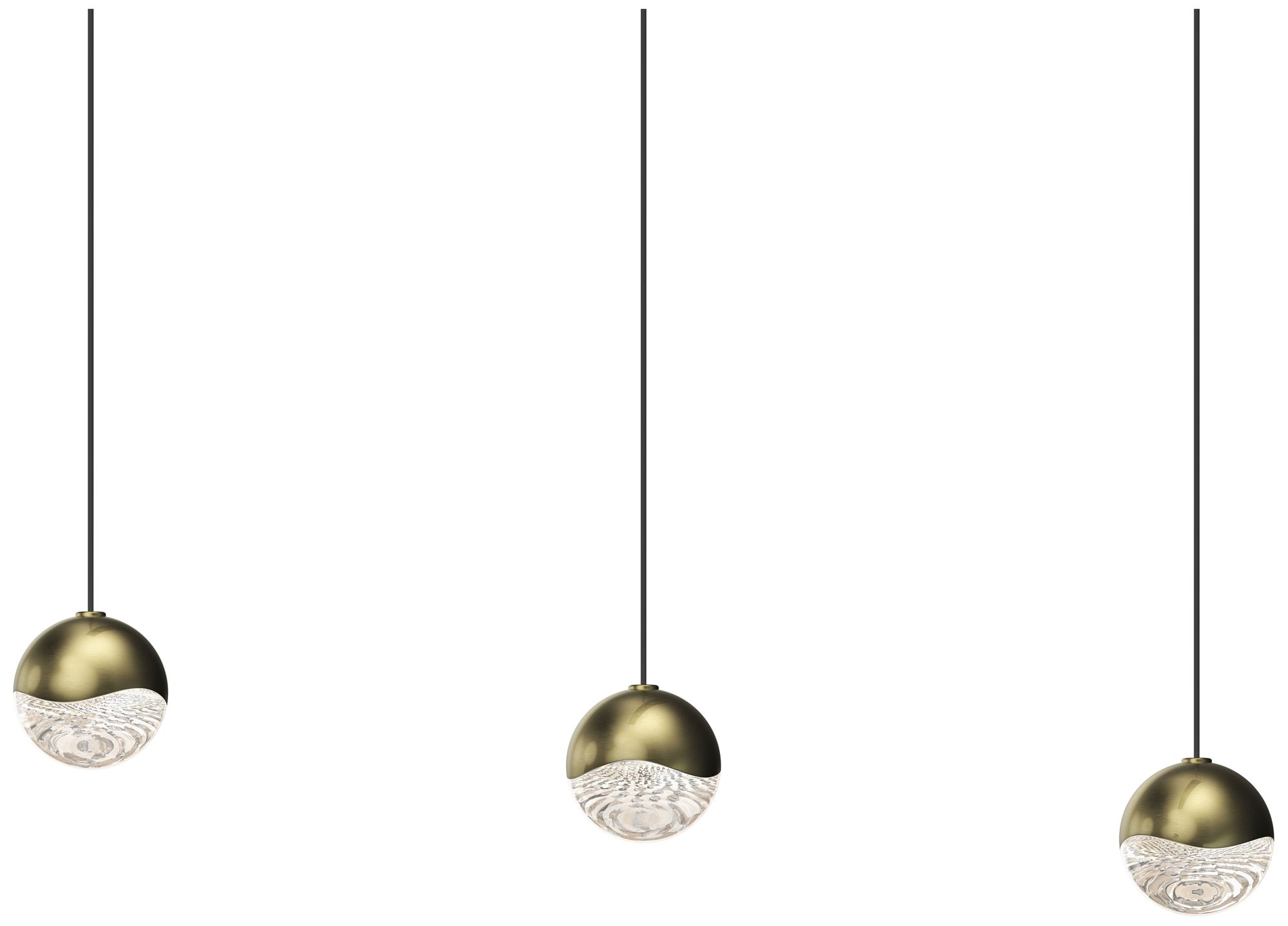 Grapes 36.5" Wide Rectangle 3-Light Brass LED Pendant