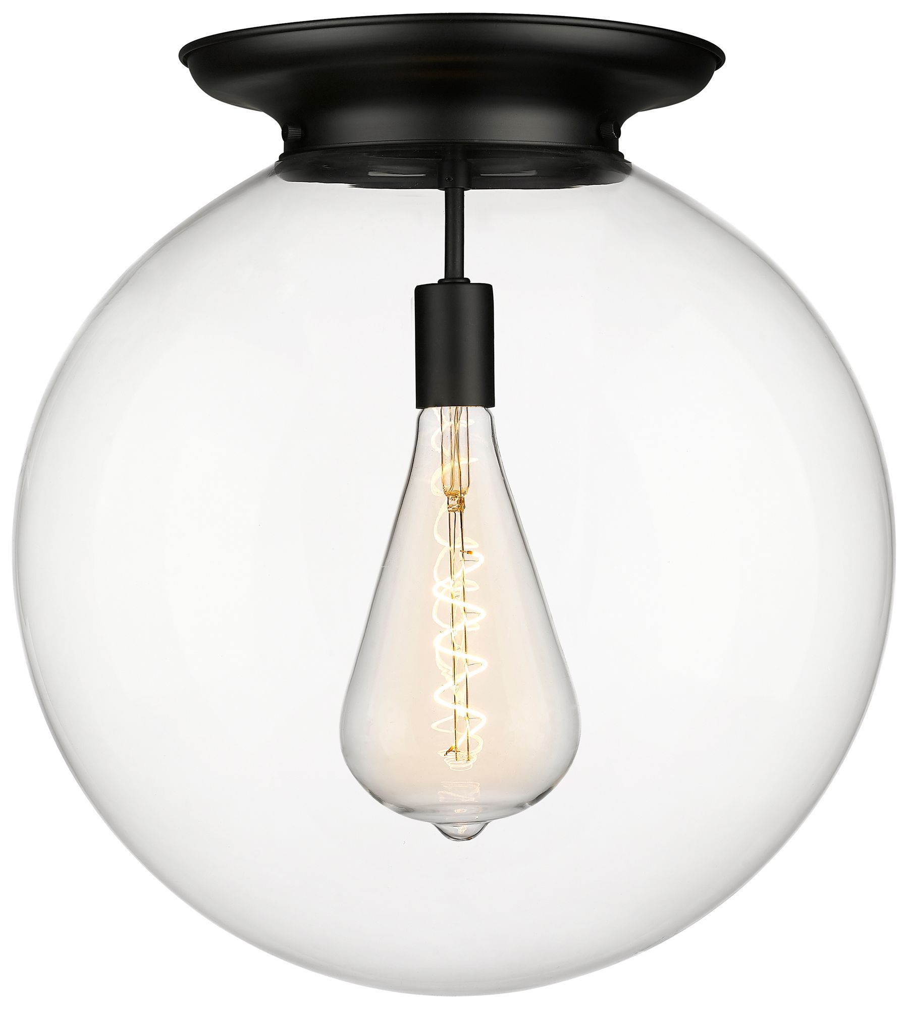 Beacon 17.75" Wide Matte Black Flush Mount With Clear Glass Shade