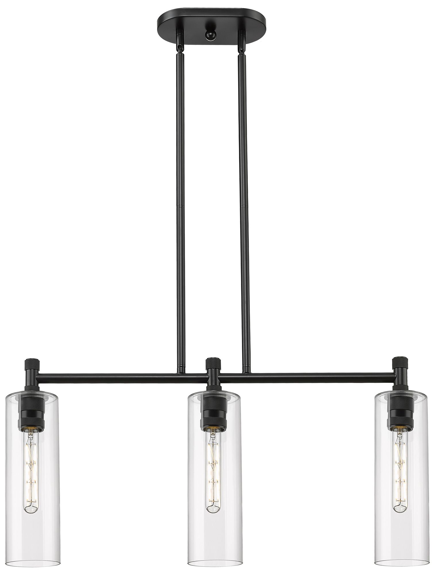 Crown Point 30.5"W 3 Light Matte Black Stemmed Island Light w/ Clear S