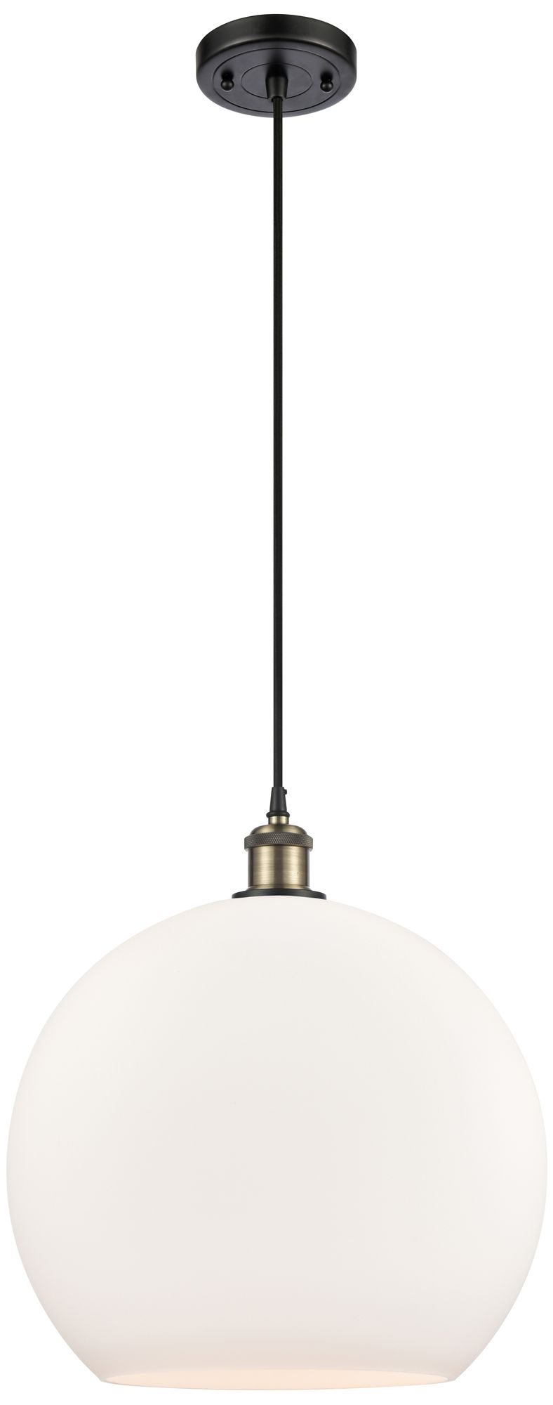 Ballston Athens 14" Black Antique Brass Pendant With Matte White Shade