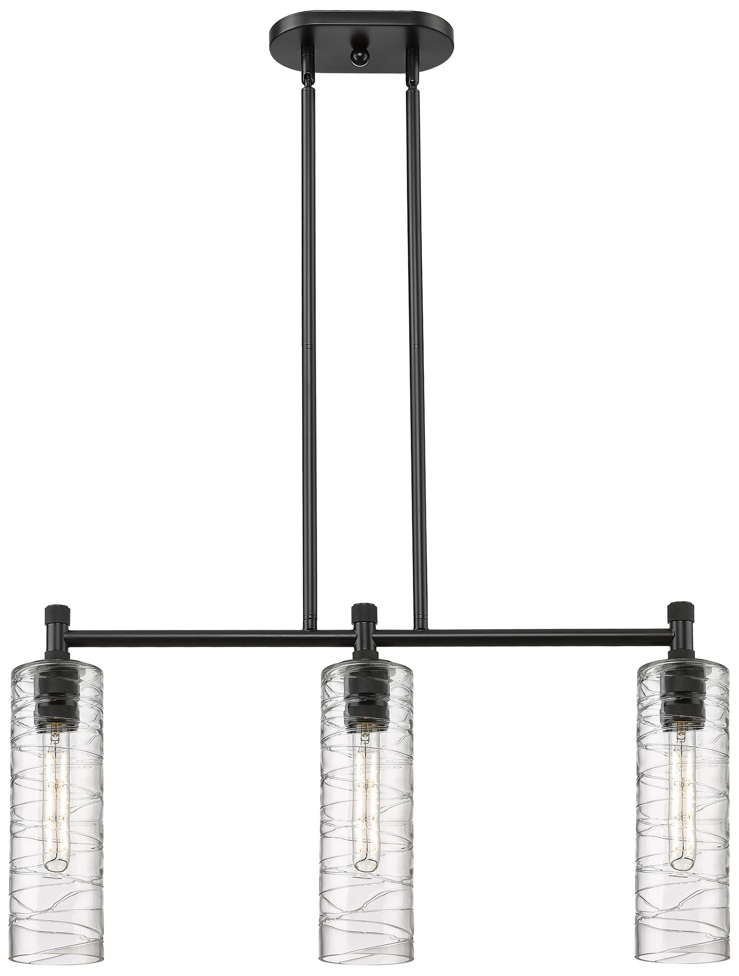 Crown Point 30.5"W 3 Light Black Stemmed Island Light w/ Deco Swirl Sh