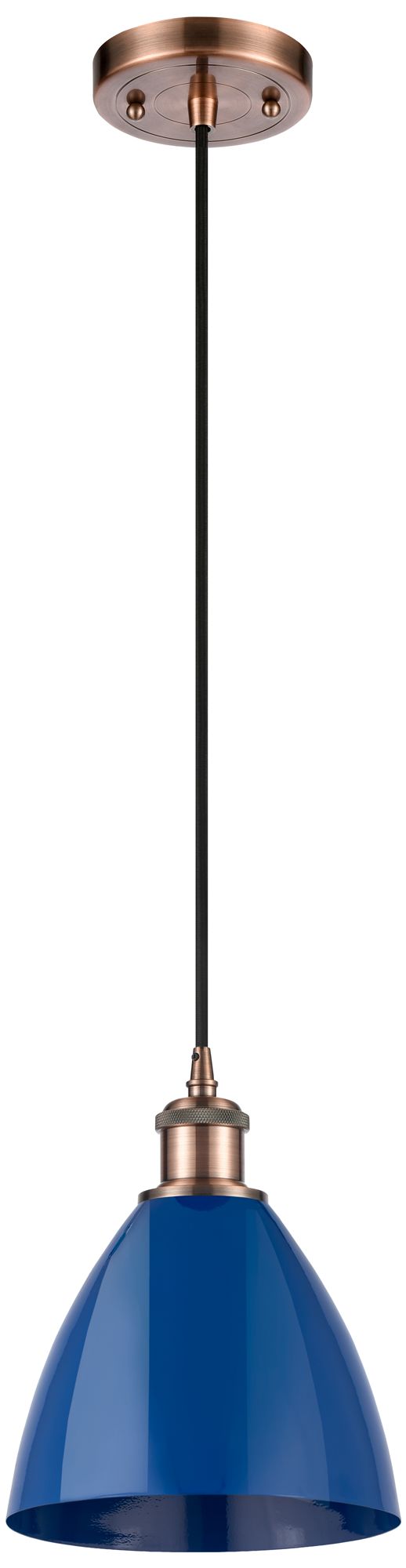 Ballston Plymouth Dome 7.5" Wide Copper Corded Mini Pendant w/ Blue Sh