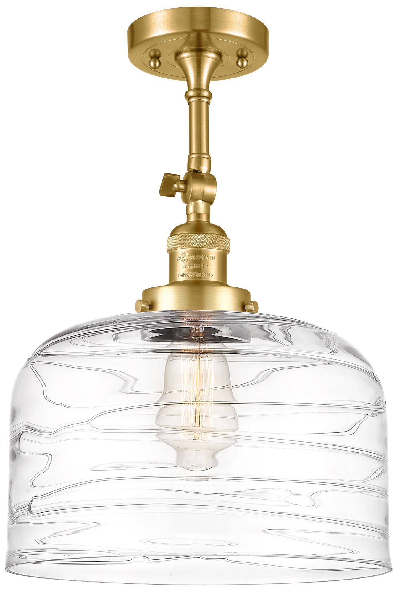 Franklin Restoration Bell 12" Satin Gold LED Semi-Flush w/ Swirl Shade