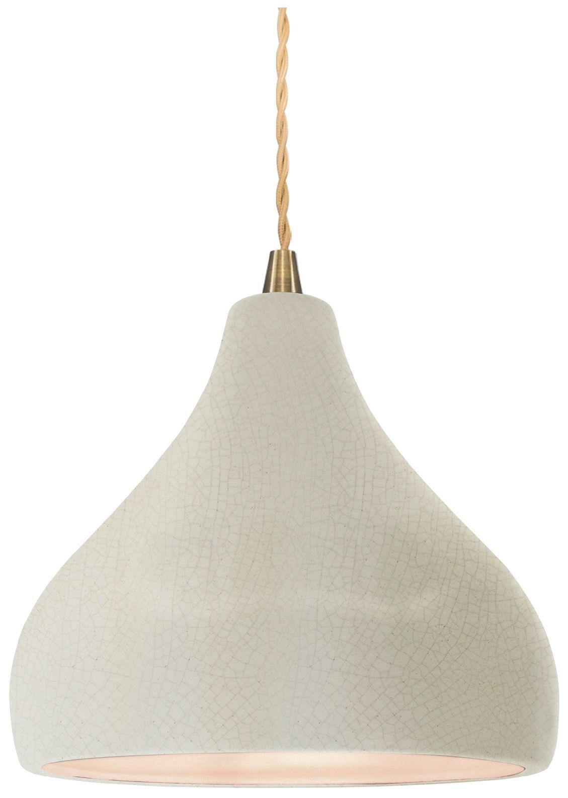 8"W White Crackle Frame Antique Brass Small Droplet Twisted LED Pendan