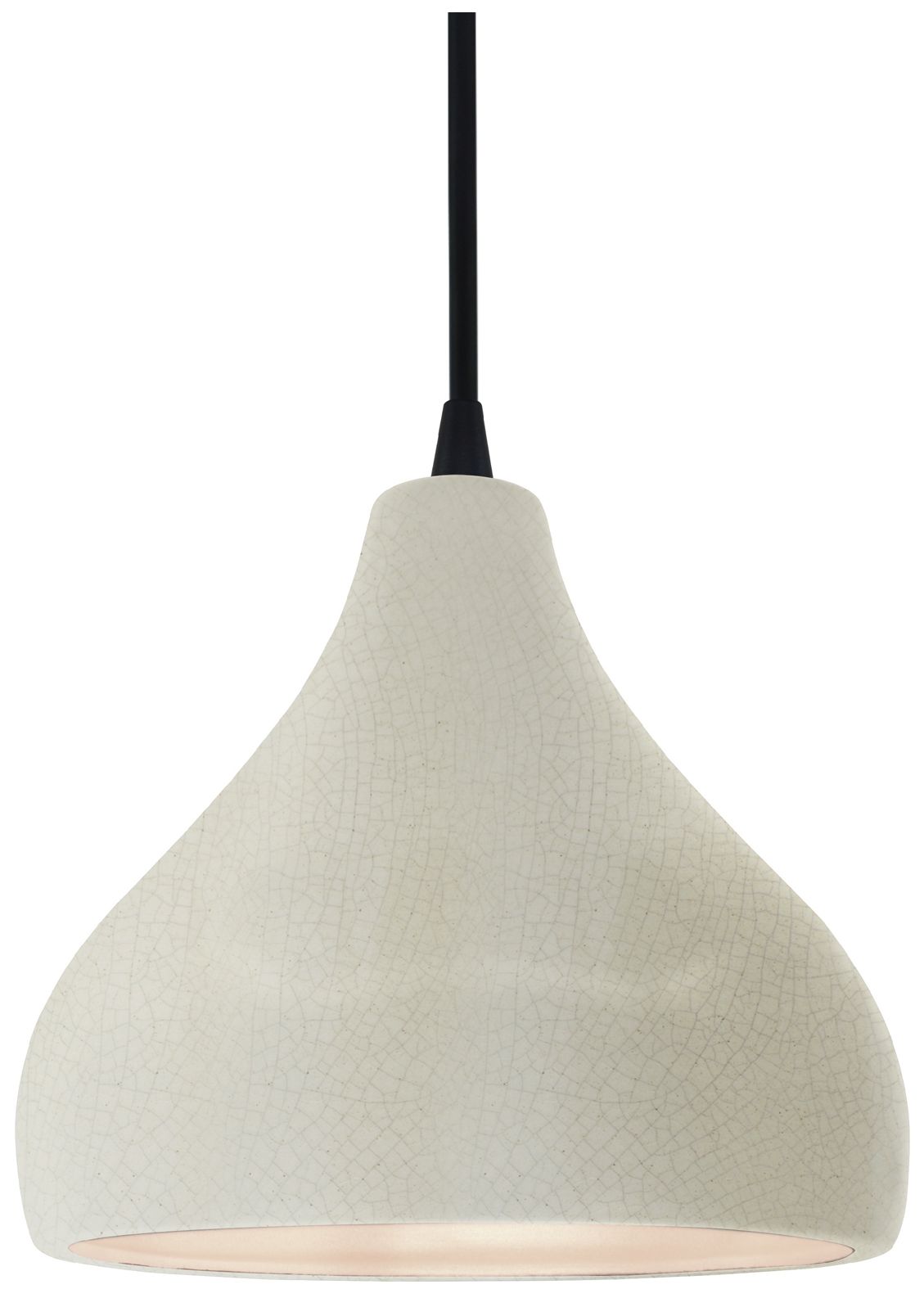8"W White Crackle Frame Matte Black Small Droplet Black Cord LED Penda