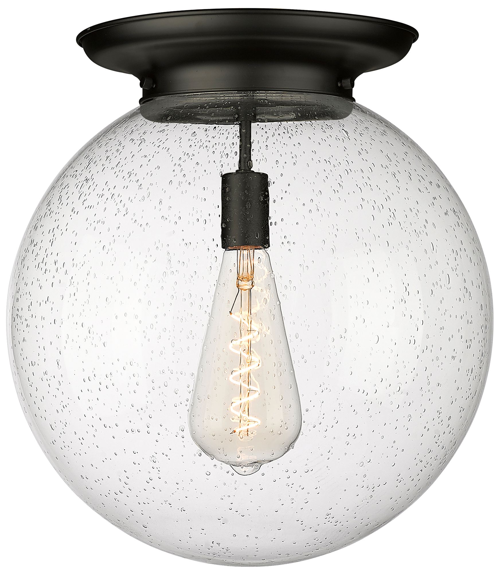 Beacon 15.75" Wide Matte Black Flush Mount With Seedy Glass Shade
