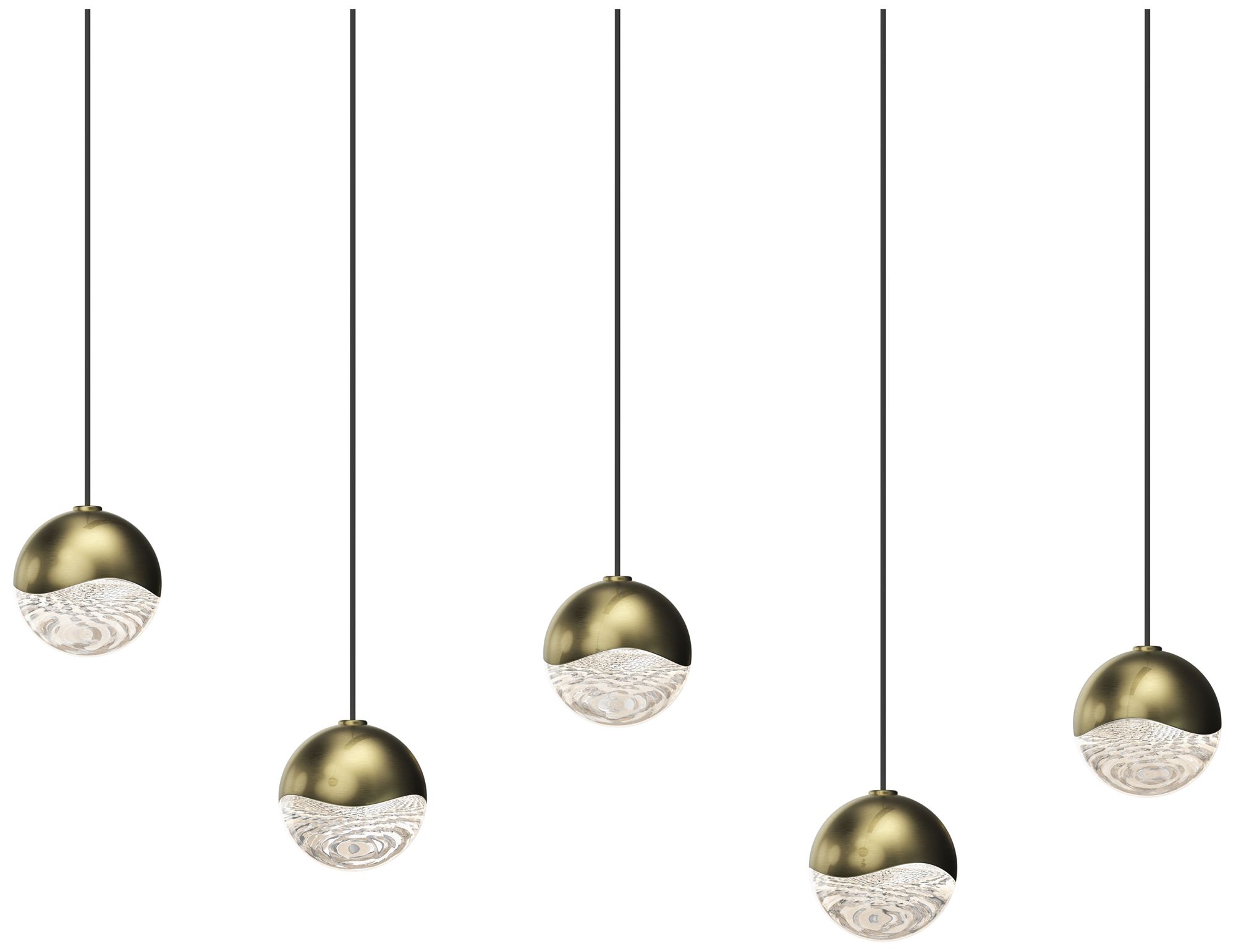 Grapes 36.5" Wide Rectangle 5-Light Brass LED Pendant