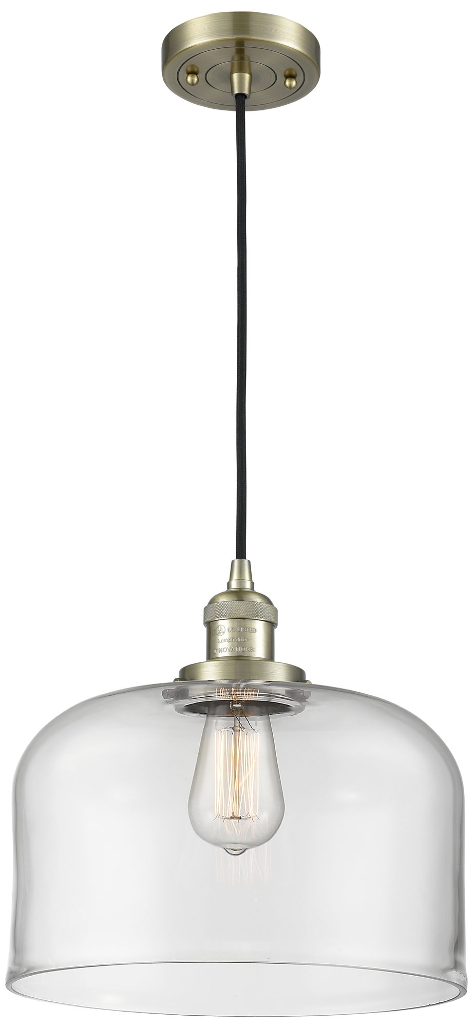 Franklin Restoration Bell 12" Brass Corded Mini Pendant w/ Clear Shade