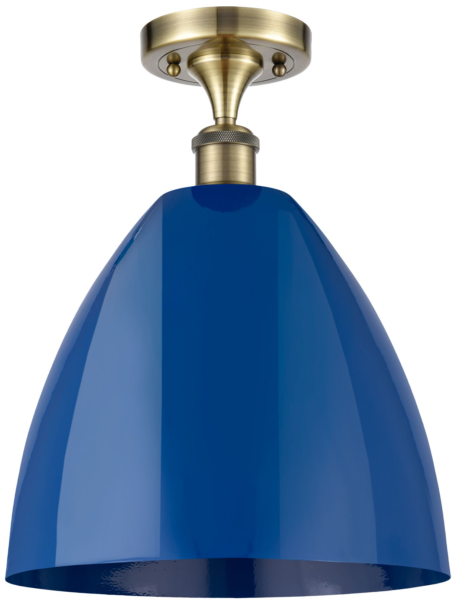 Plymouth Dome 12" Wide Antique Brass Semi Flush Mount w/ Blue Shade
