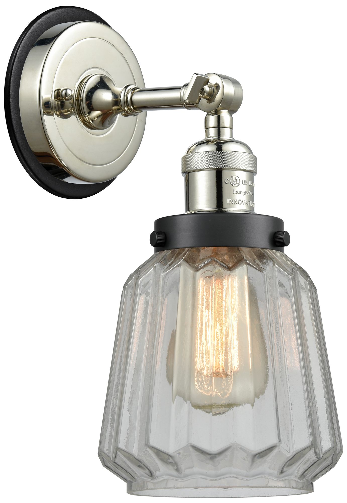 Franklin Chatham 7" Polished Nickel Adjustable Sconce w/ Clear Shade