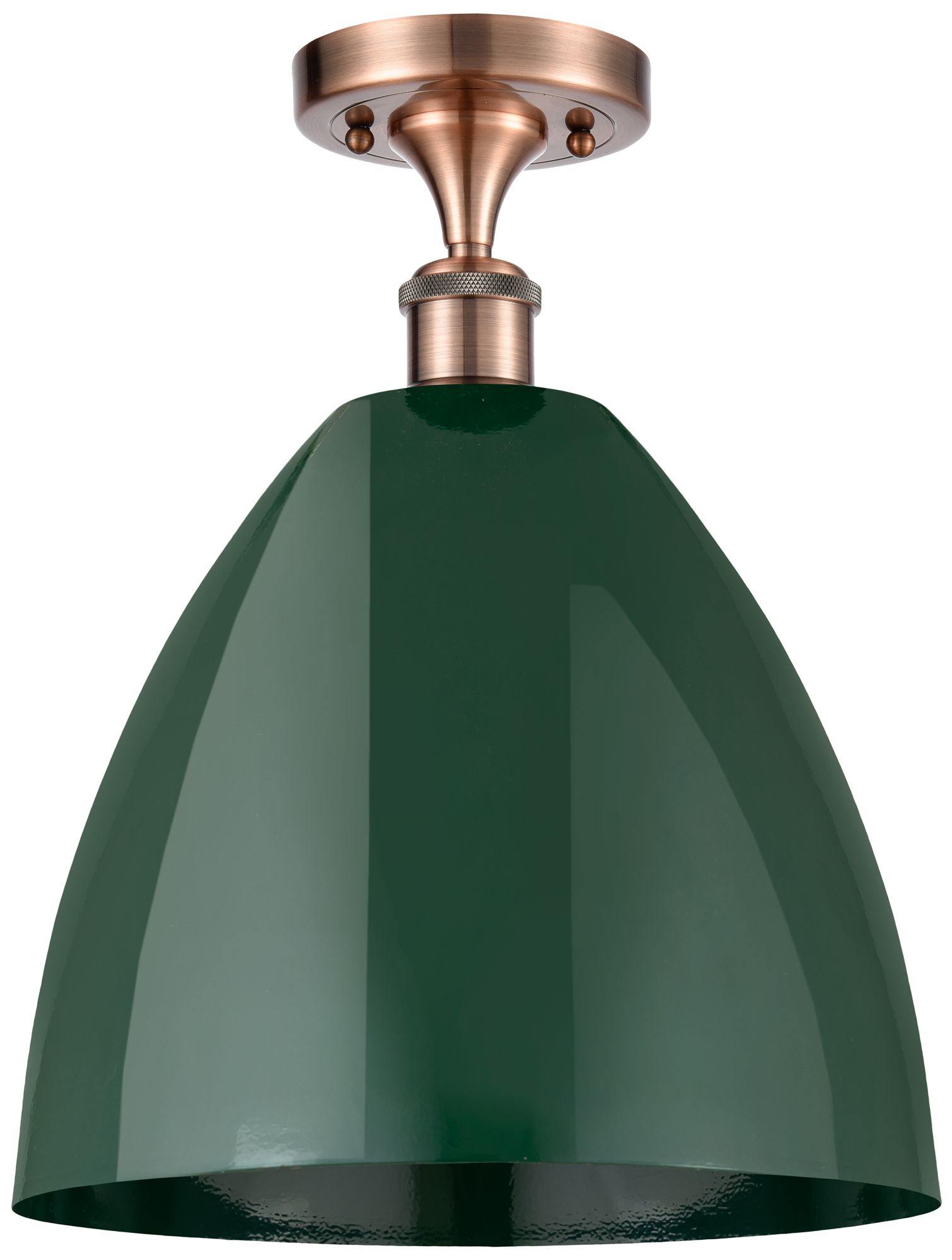 Plymouth Dome 12" Wide Copper Semi Flush Mount w/ Green Shade