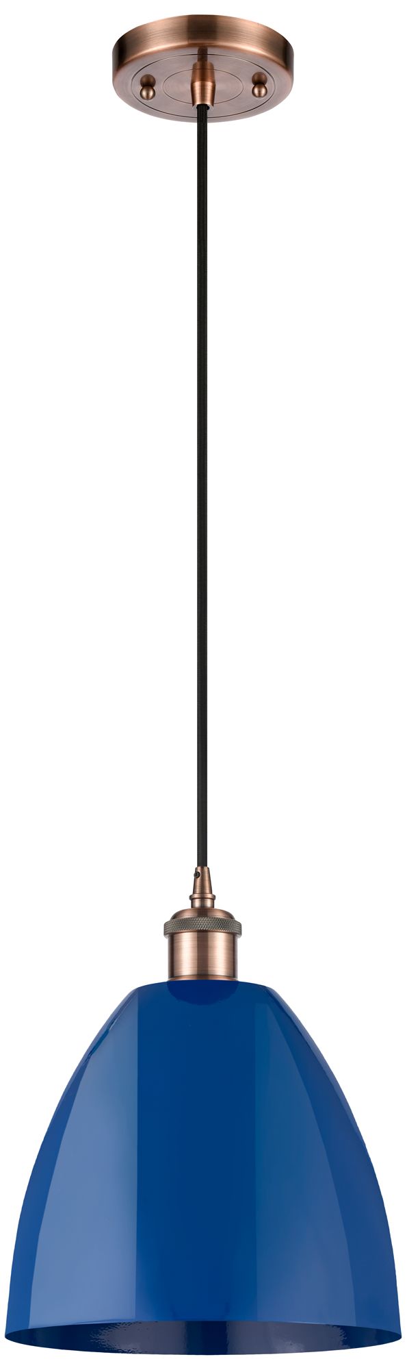 Ballston Plymouth Dome 9" Wide Copper Corded Mini Pendant w/ Blue Shad