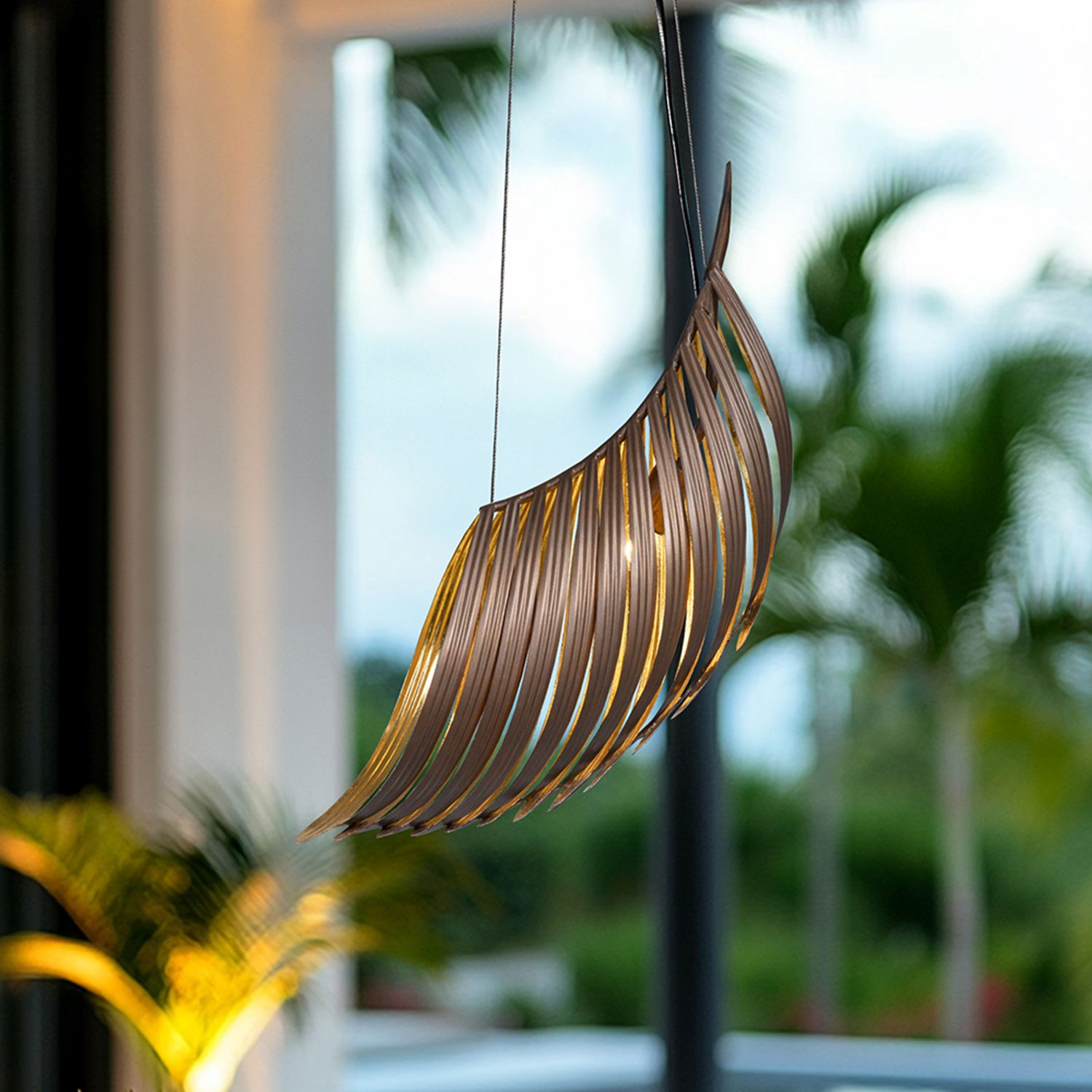 Palmera 30" Wide Soft Bronze And Gold Leaf Curved Leaf Pendant