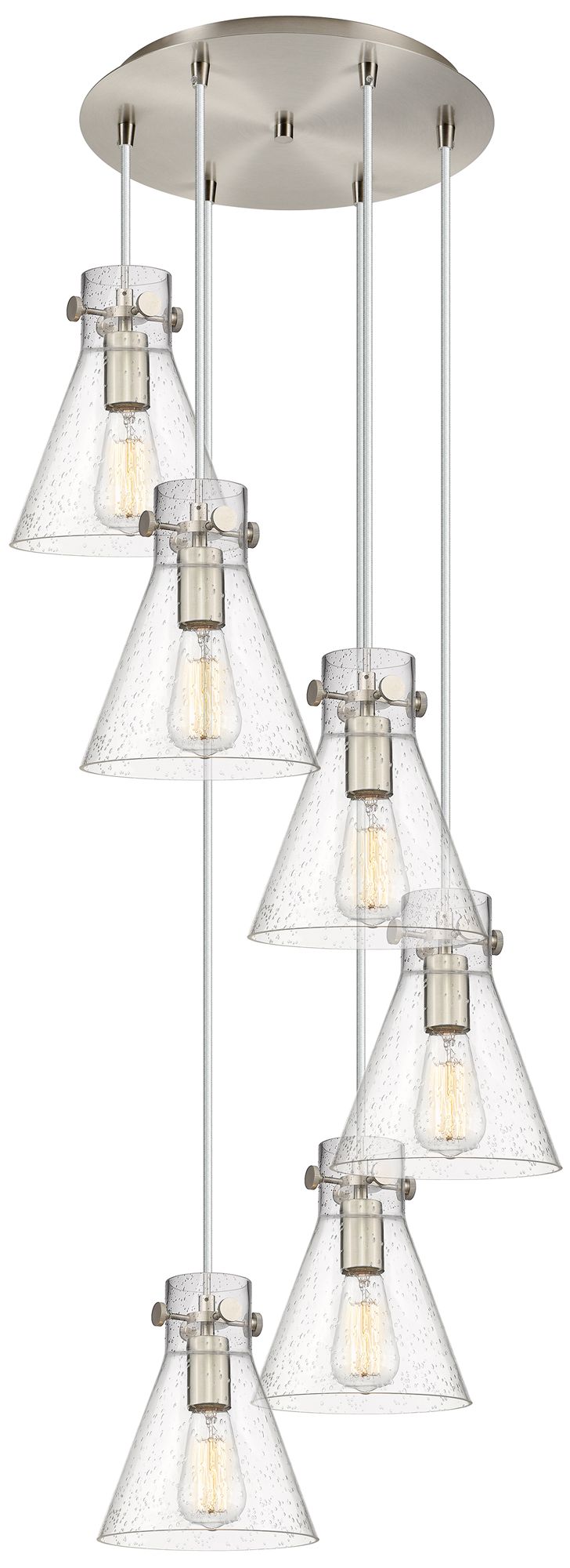 Newton Bell 39.75"W 3 Light Polished Nickel Linear Pendant w/ Seedy Sh