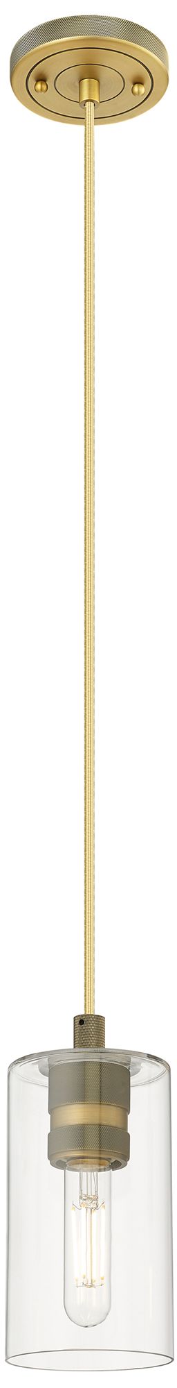 Crown Point 3.88" Wide Brushed Brass Cord Hung Pendant With Clear Shad