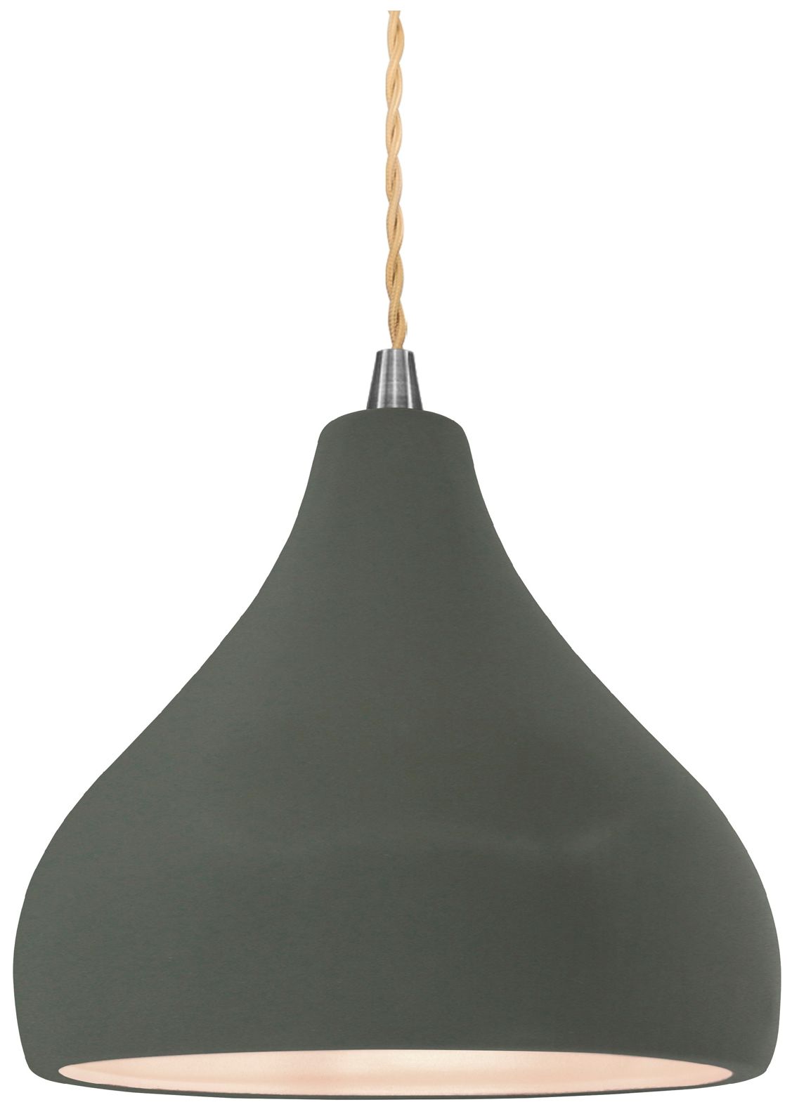 8"W Pewter Green Frame Nickel Small Droplet Beige Twisted LED Pendant