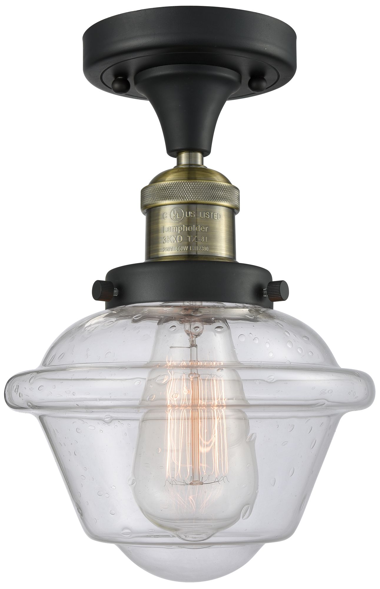 Oxford 7.5" Wide Black Brass Semi Flush Mount w/ Seedy Shade