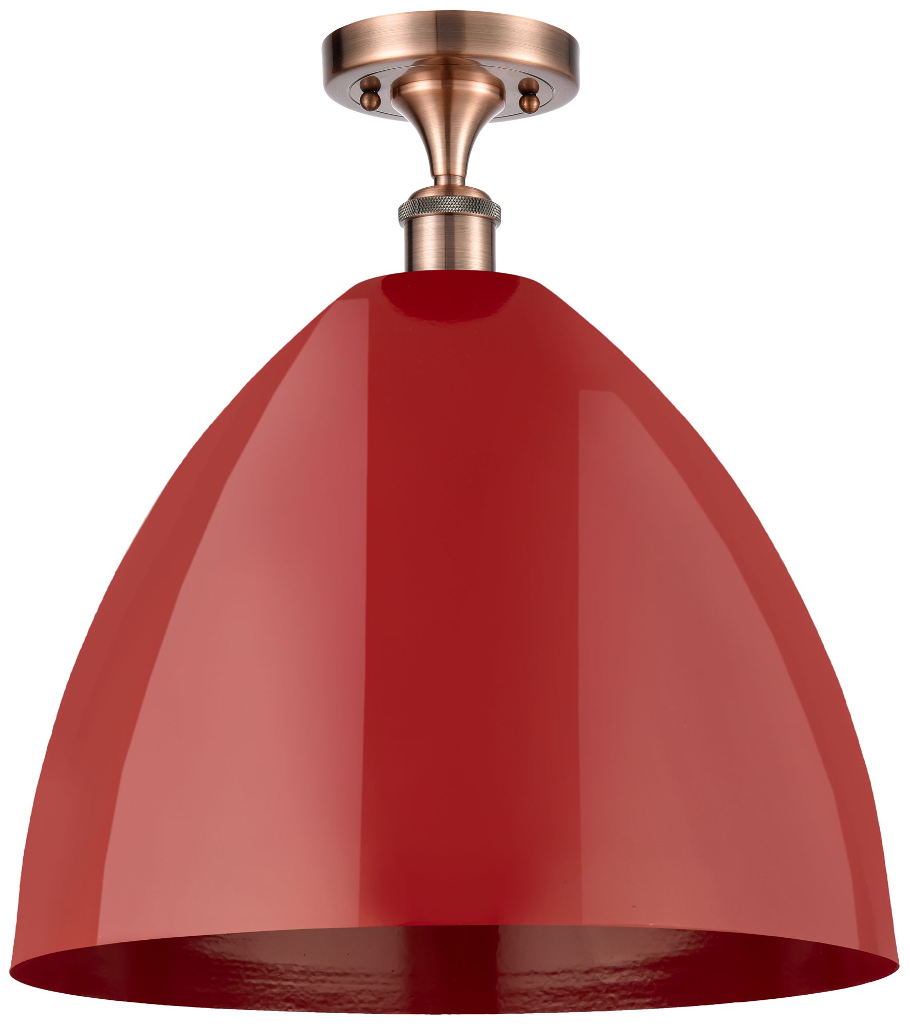 Plymouth Dome 16" Wide Copper Semi Flush Mount w/ Red Shade