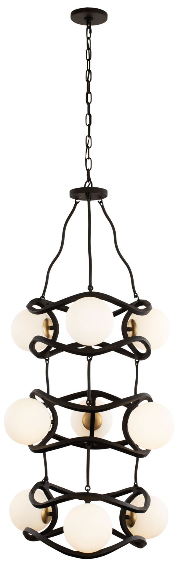 Black Betty 9-Lt 3-Tier Foyer Pendant - Carbon & French Gold