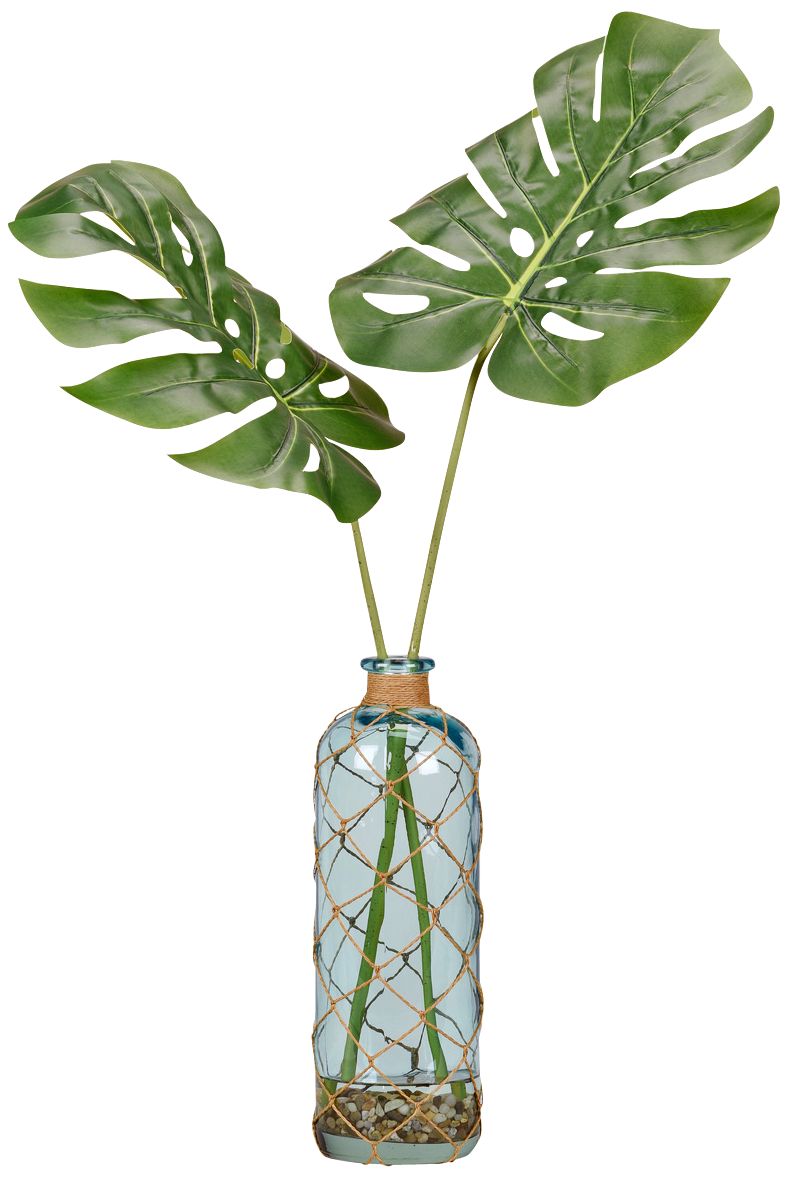Split Leaf Philos 34"H Faux Plant in Glass Bottle Vase