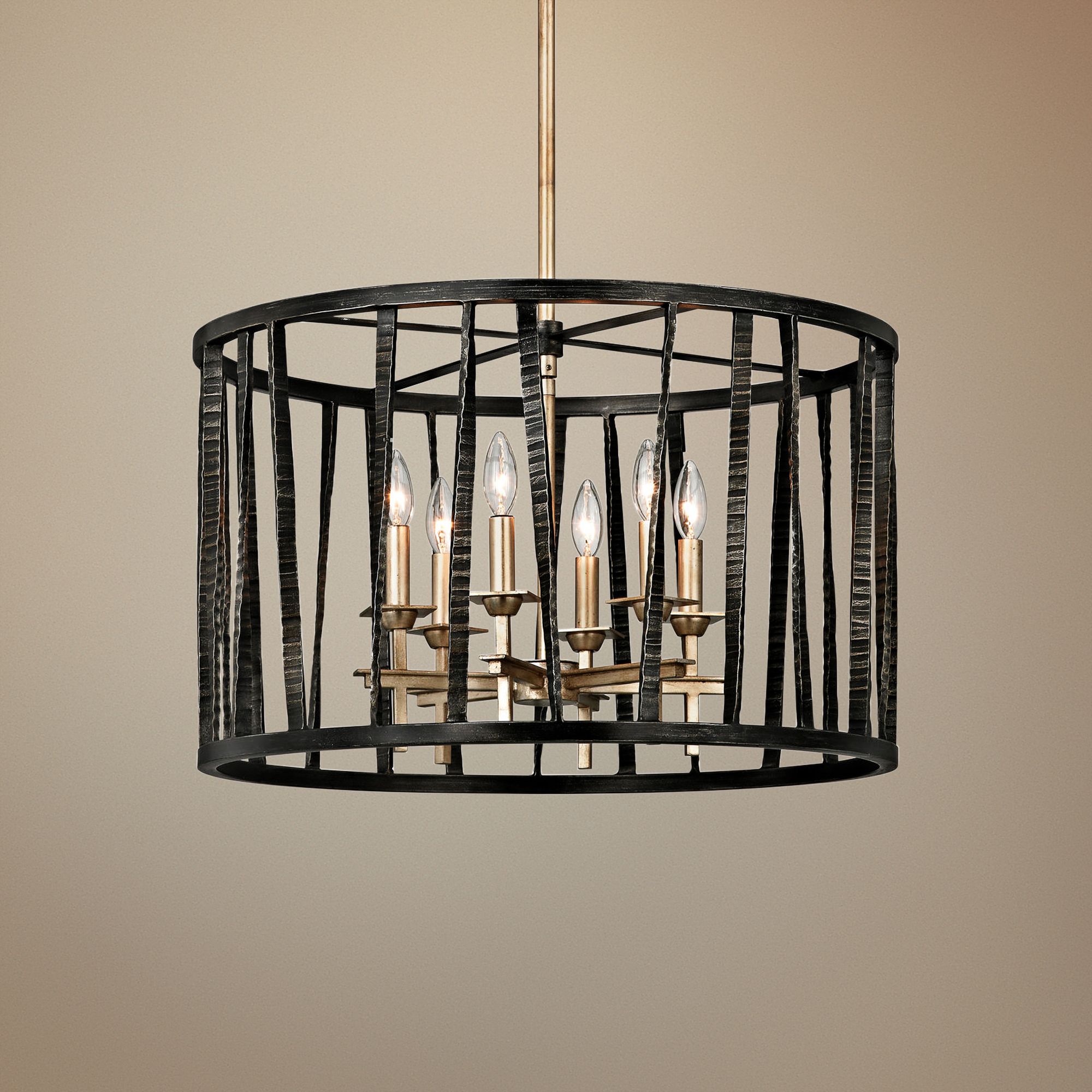 Bastille 25"W Pompeii Silver and Silver Leaf 6-Light Pendant