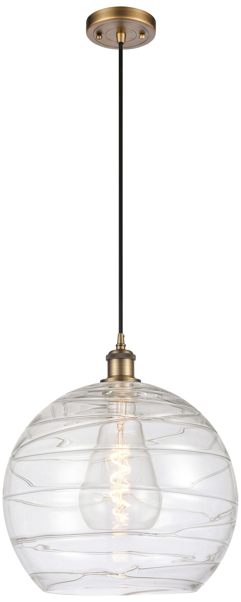 Ballston Athens 14" Brushed Brass Pendant With Clear Deco Swirl Shade
