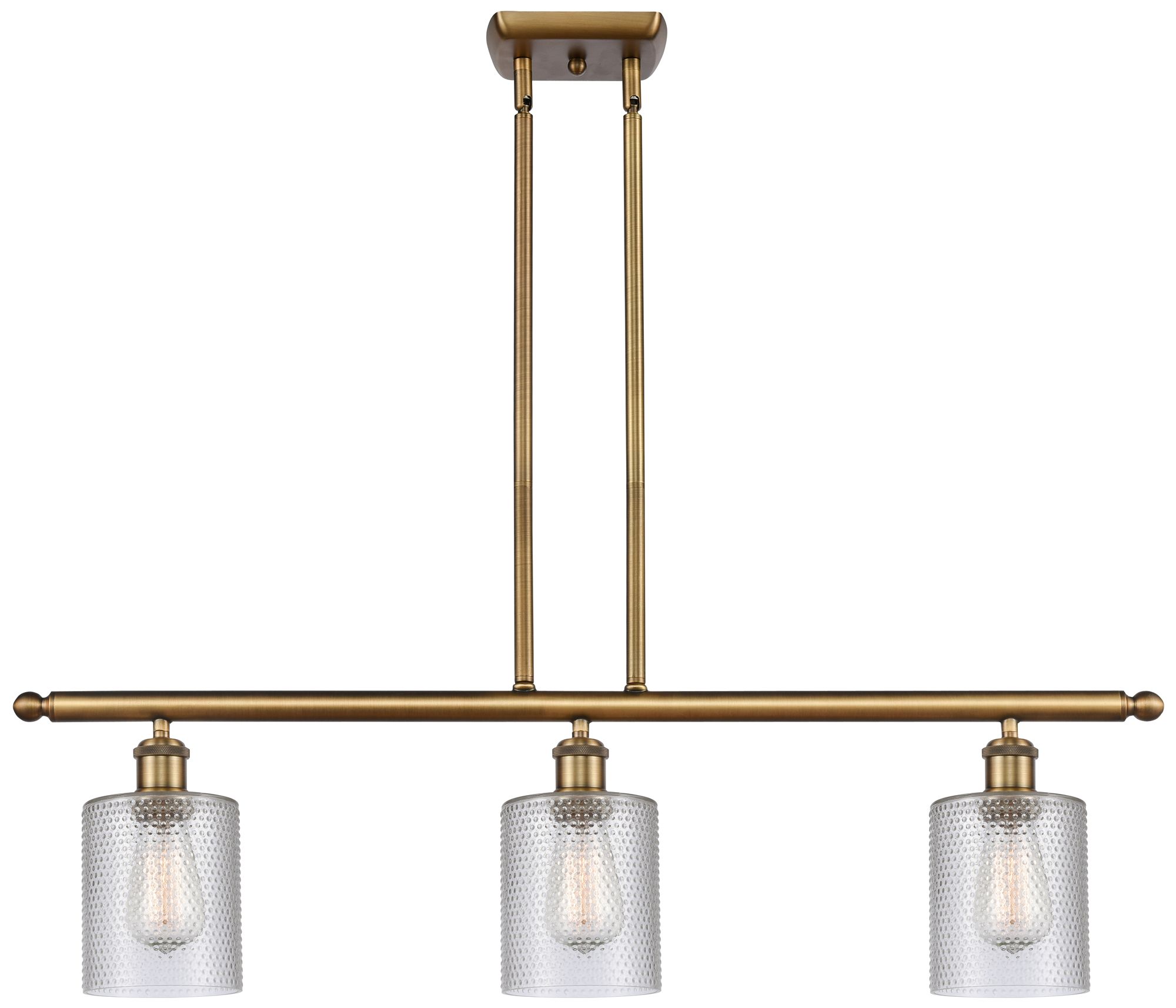 Ballston Cobbleskill 36"W 3 Light Brushed Brass Island Light w/ Clear