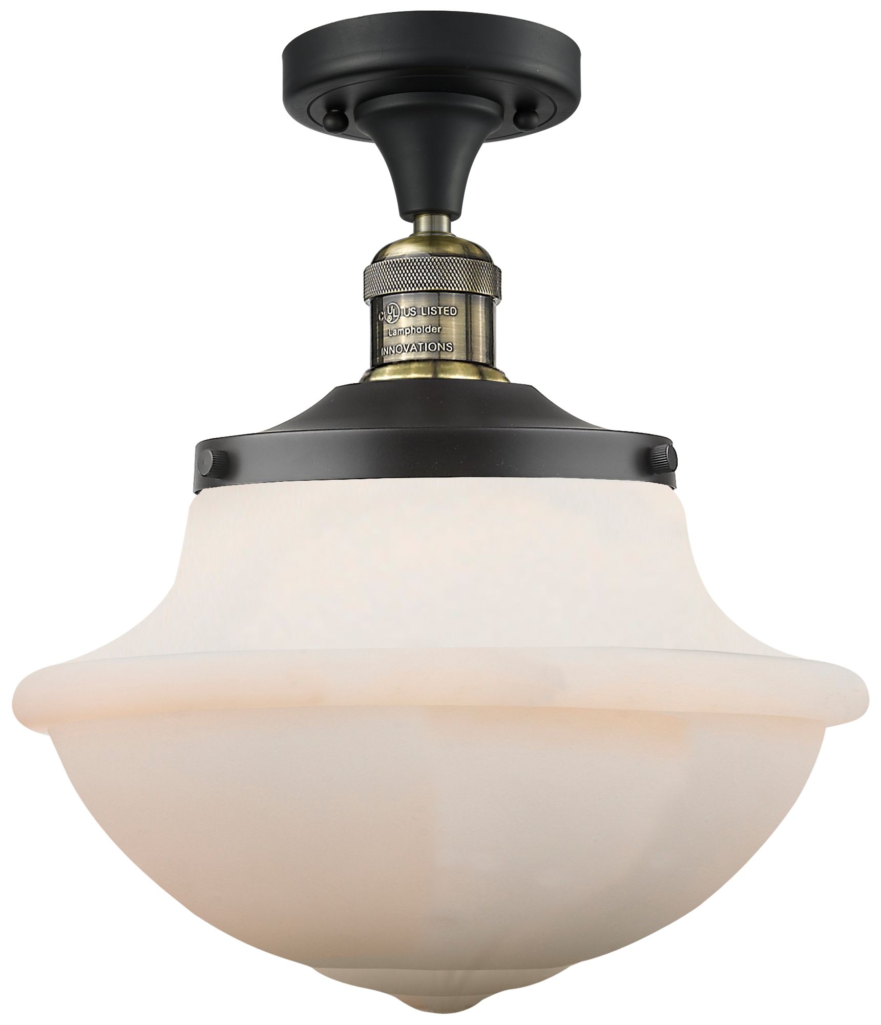 Franklin Oxford 11.75" Wide Black Brass Semi Flush Mount w/ White Shad
