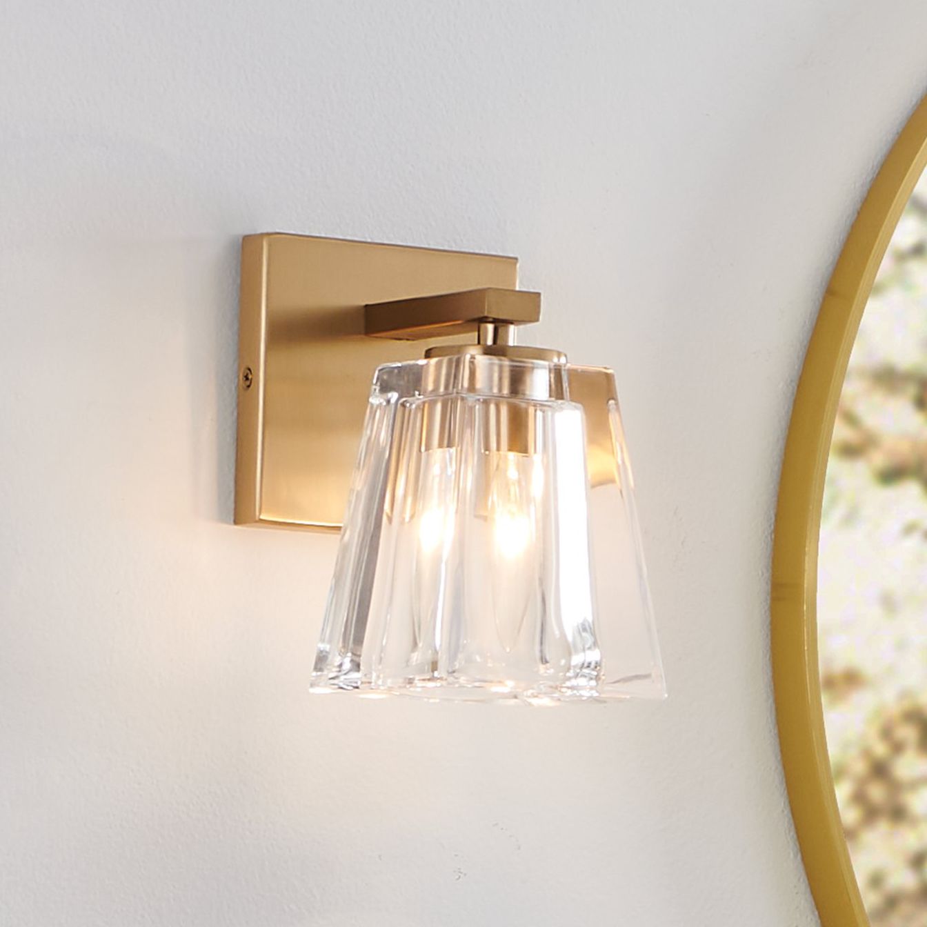 Thesis Valentin 4" Champagne Gold Vanity Light w/ Clear Pressed Glass Shade