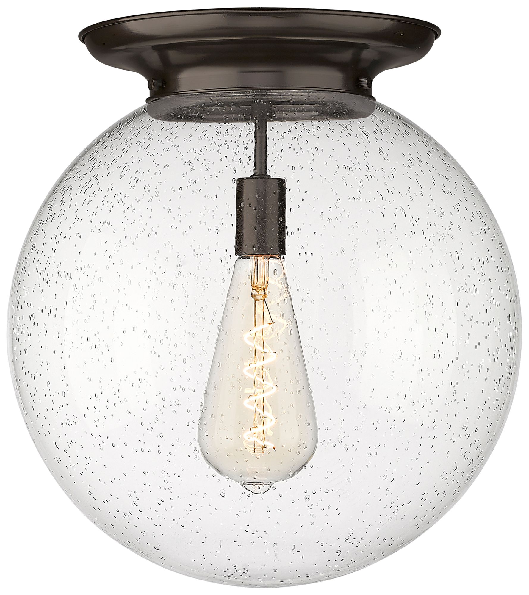Beacon 15.75" Wide Oiled Brass Flush Mount With Seedy Glass Shade
