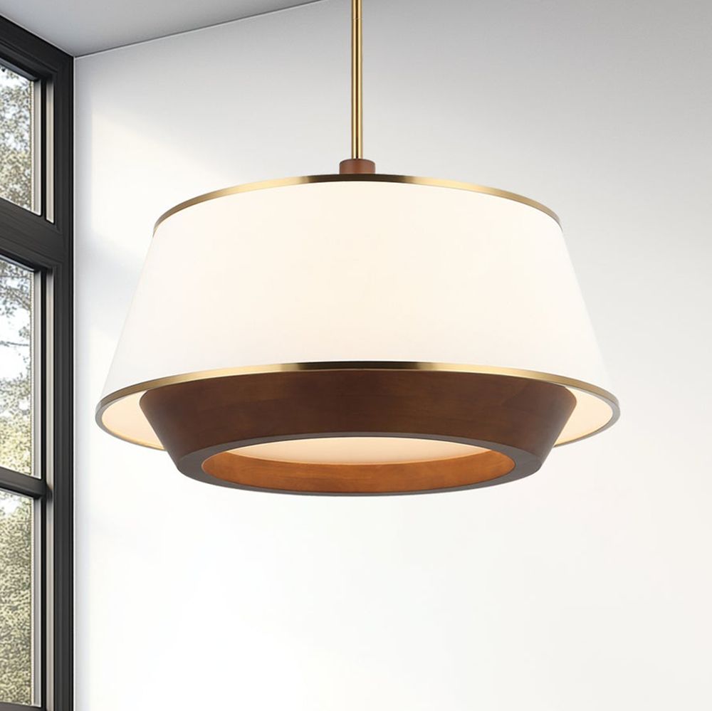 Varaluz Desert Flyer 26" Wide Satin Brass/Medium Walnut 6-Light Pendan