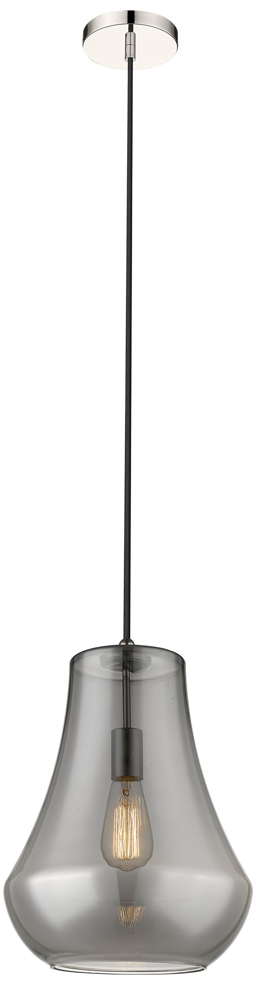 Fairfield 12" Polished Nickel Cord Hung Mini Pendant w/ Plated Smoke S