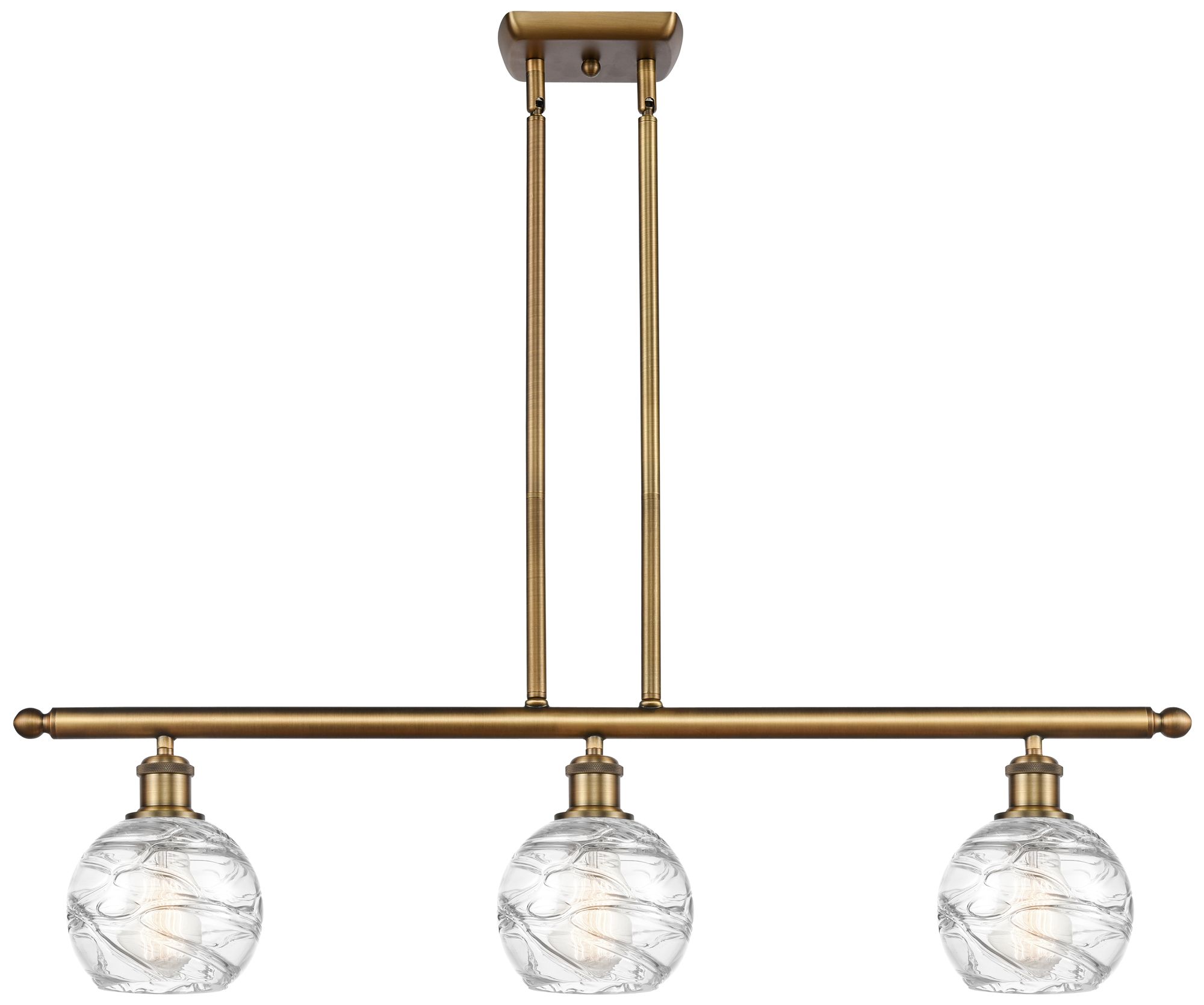 Athens 36"W 3 Light Brushed Brass Island Light w/ Deco Swirl Shade