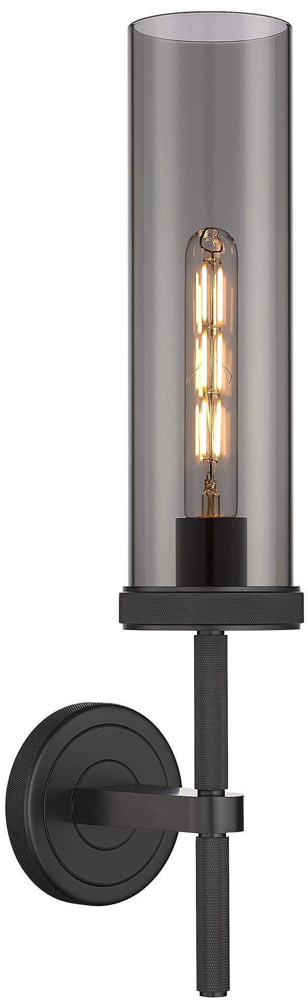 Lincoln 20 3/4"H Matte Black with Light Smoke Glass Sconce