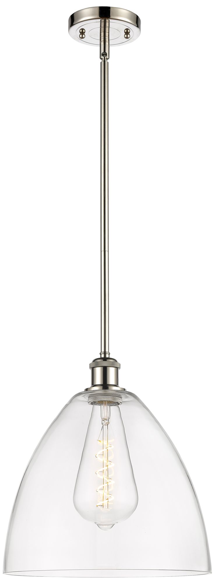 Bristol Glass 12" LED Mini Pendant - Polished Nickel - Clear Shade