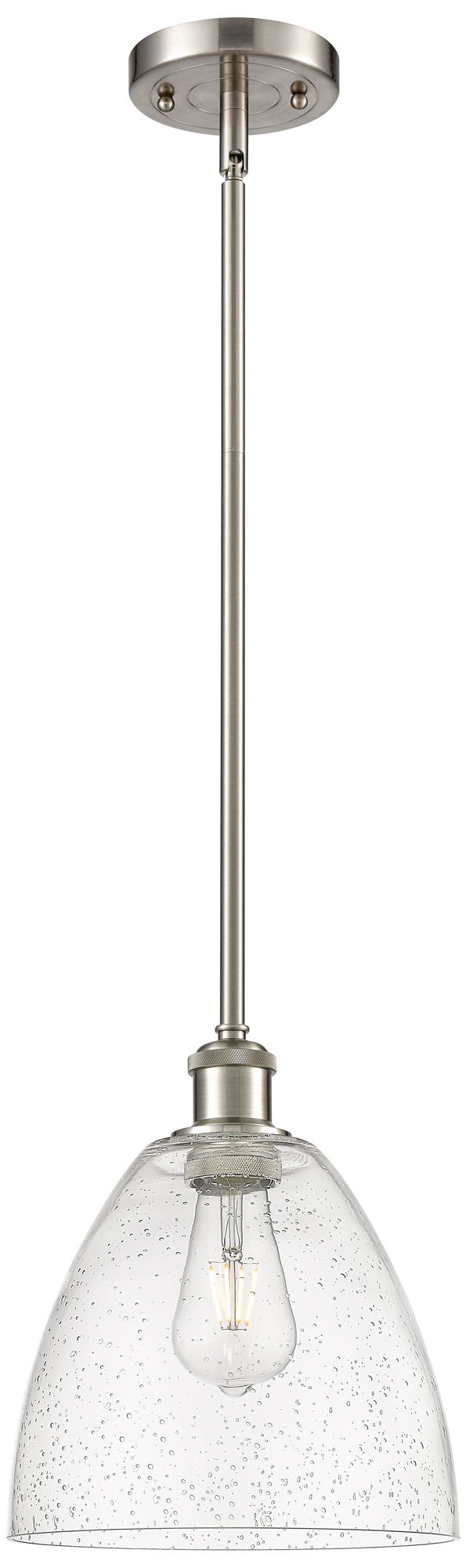 Bristol Glass 9" Brushed Satin Nickel Mini Pendant w/ Seedy Shade