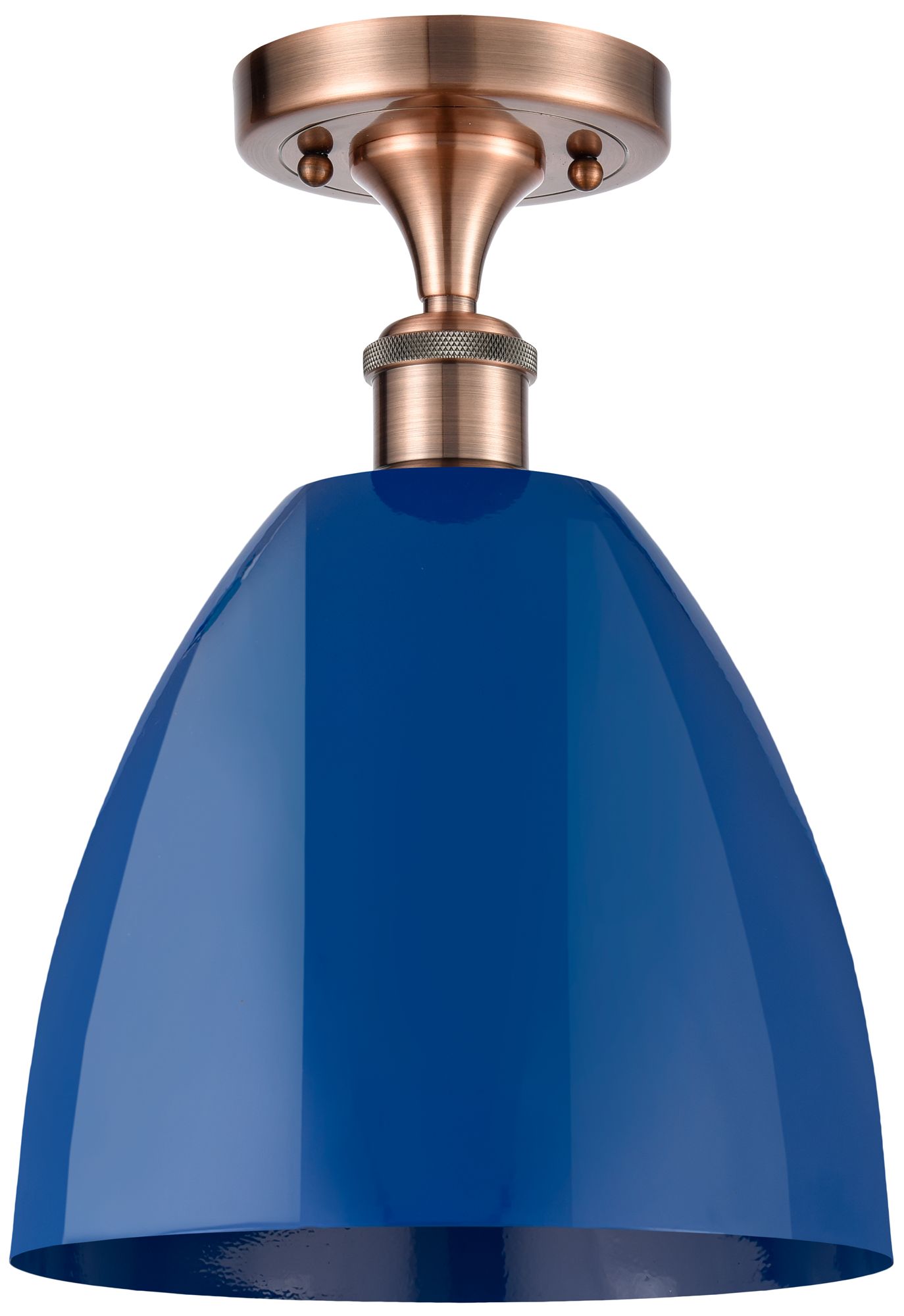 Plymouth Dome 9" Wide Copper Semi Flush Mount w/ Blue Shade