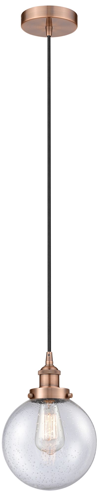 Beacon 8" Antique Copper Mini Pendant w/ Seedy Shade