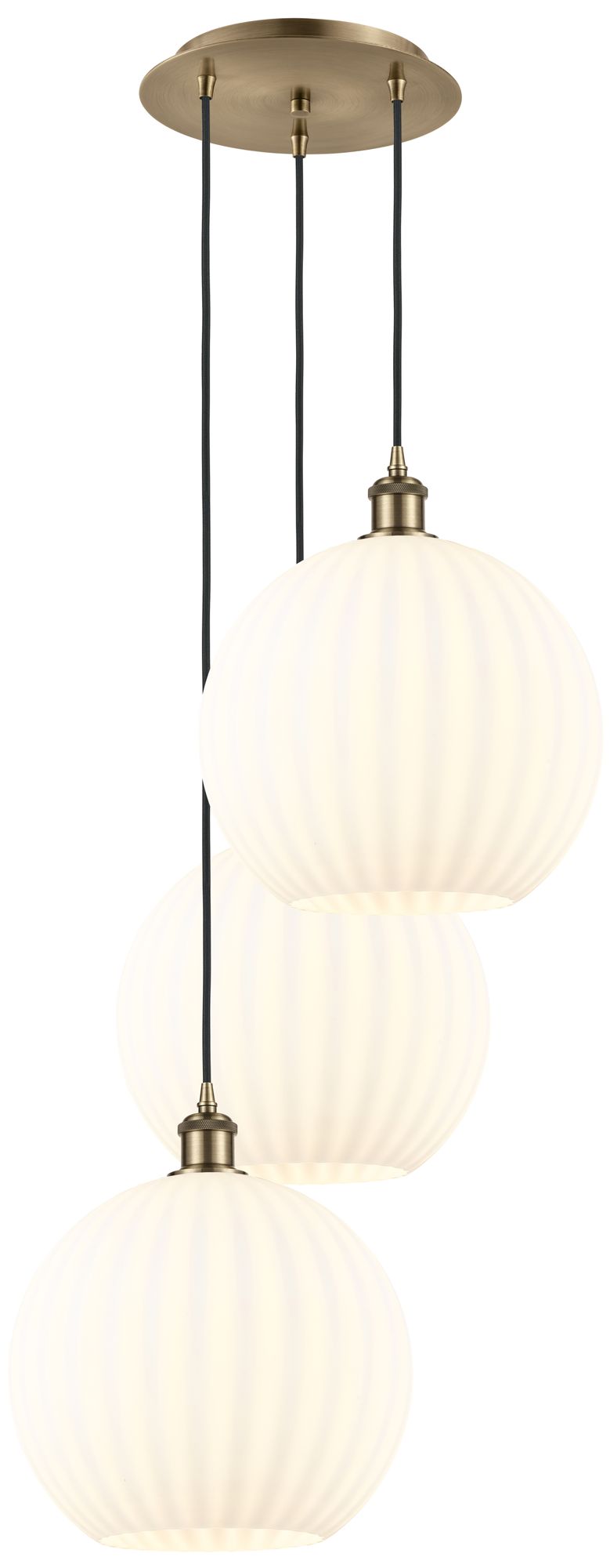 Ballston 18.5"W 3 Light Antique Brass Cord Multi Pendant w/ Venetian S
