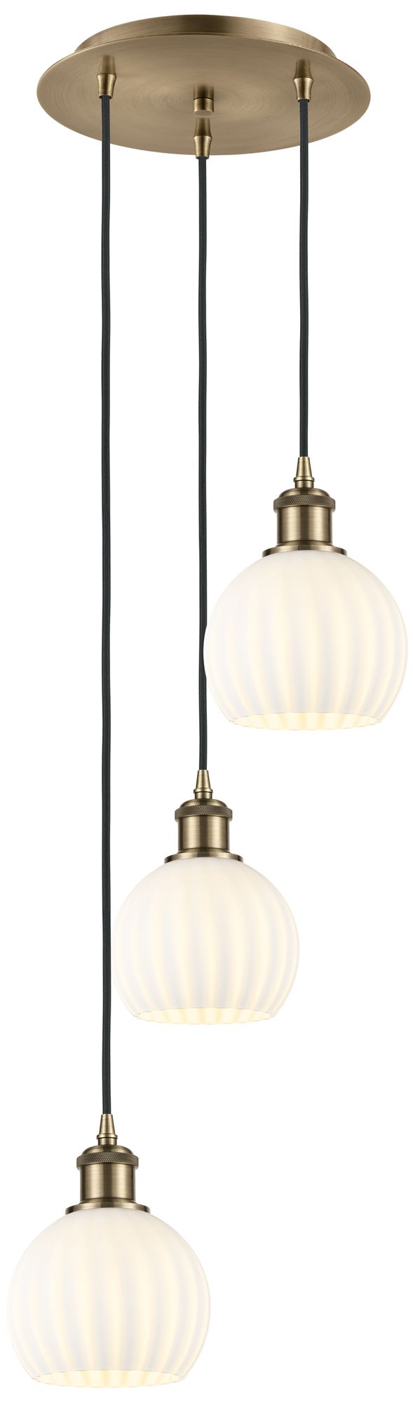 Ballston 12.5"W 3 Light Antique Brass Cord Multi Pendant w/ Venetian S