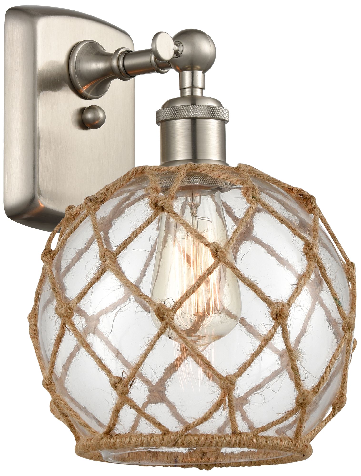 Farmhouse Rope 8" LED Sconce - Nickel - Clear Glass with Brown Rope Sh