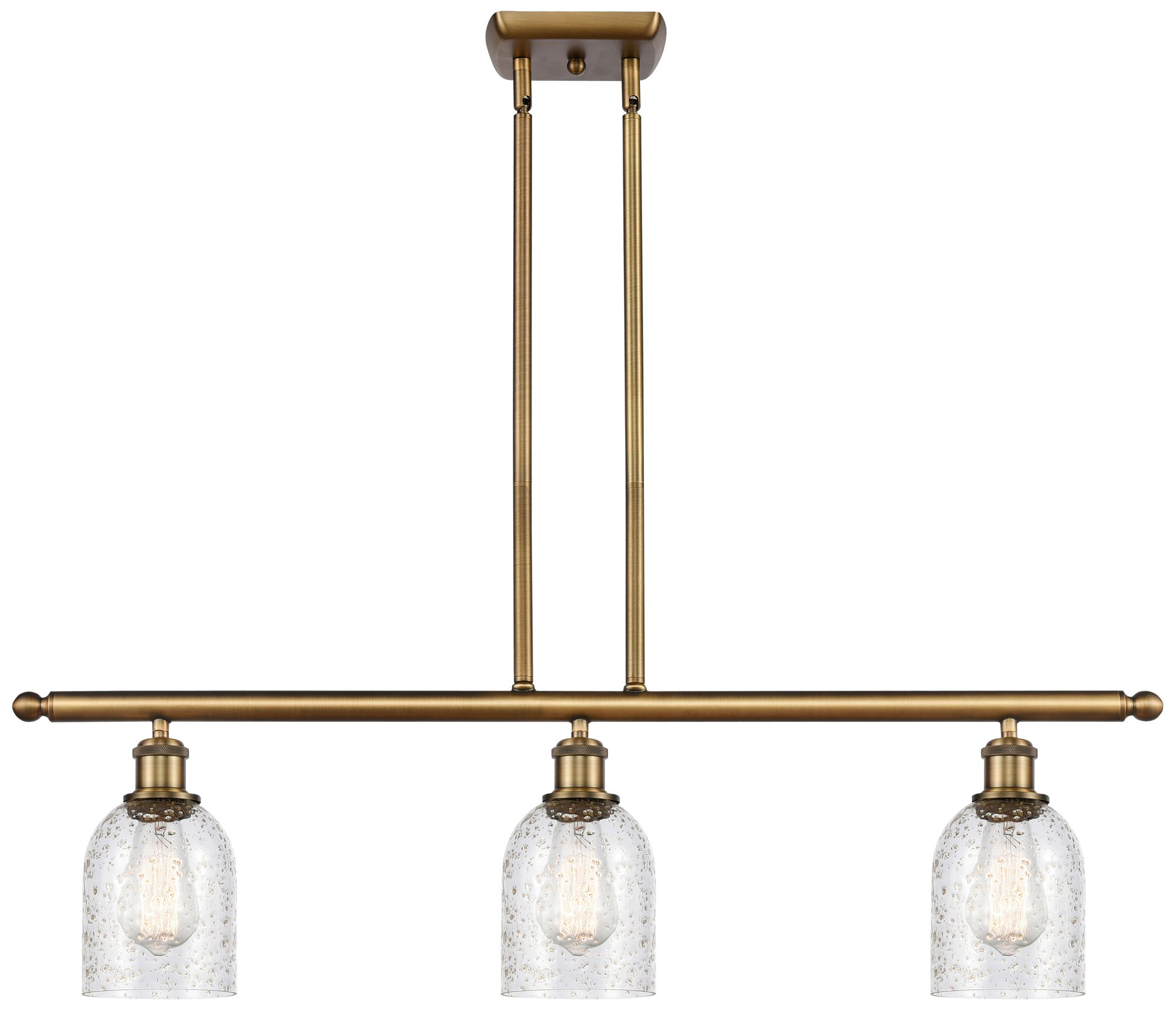 Caledonia 36"W 3 Light Brushed Brass Stem Hung Island Light w/ Mica Sh